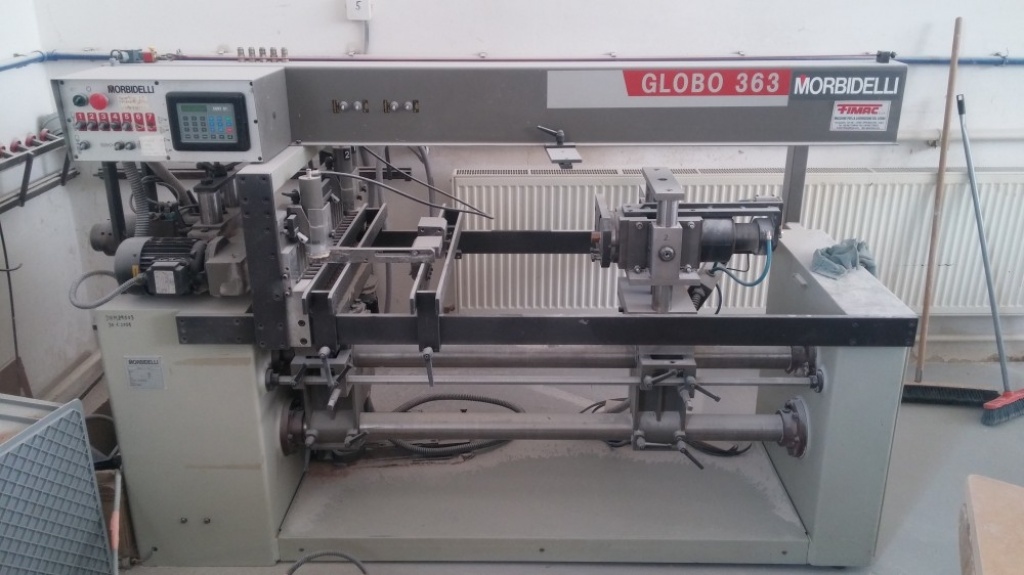 Calibration sanding machine - this machine is able to sand edge glueboard and shape oblique leges and sand primer layer like paint or transparent lacquer or veneer.